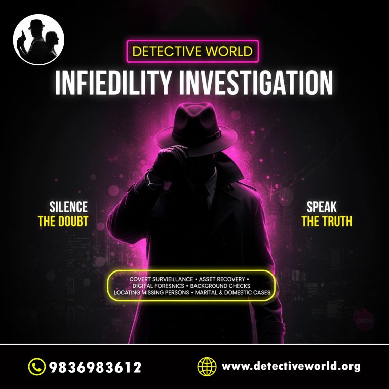 In today’s fast-paced world, doubts and uncertainty can quietly damage even the strongest relationships. Detective World’s Infidelity Investigation Services are designed to bring clarity, truth, and peace of mind when you need them the most. With a combination of covert surveillance, digital forensics, background checks, and expert intelligence gathering, our team works discreetly and professionally to uncover the facts behind the suspicion. Whether it’s marital concerns, domestic issues, or missing pieces in a personal relationship, we help you silence the doubt and speak the truth. Trust Detective World to handle your case with confidentiality, accuracy, and the highest level of integrity.