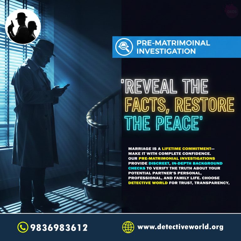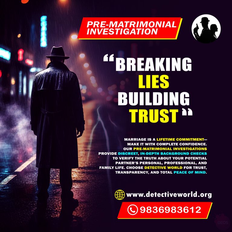 Marriage is a lifelong commitment, and entering it with clarity, trust, and confidence is essential. Detective World’s Pre-Matrimonial Investigation Services help individuals and families verify important details about a potential life partner before taking the next big step. Our experts conduct discreet, detailed, and professional background checks, covering personal habits, character, employment, financial stability, education, social reputation, relationships, and family background. With rising cases of fraud, hidden truths, and misrepresentation, verifying facts has become crucial in today’s world. At Detective World, we focus on delivering transparency, trust, and peace of mind so you can make your marriage decision with complete confidence. Because when it comes to choosing a life partner, truth is the strongest foundation.